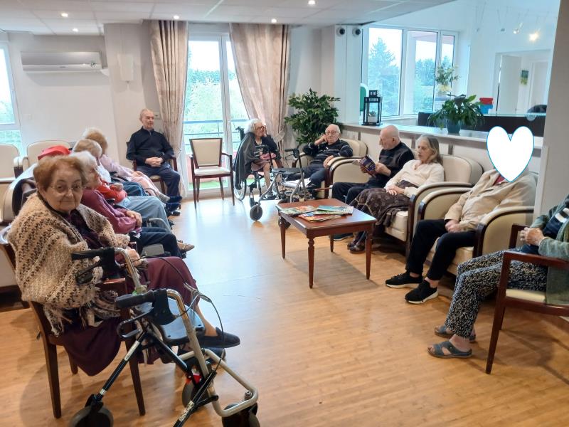 Ce moment permet à nos résidents de garder un lien avec le monde extérieur et de se recentrer sur le moment présent en temps que citoyen. Sont ainsi favorisés les échanges entre nos ainés ainsi que l'expression de témoignages personnels.